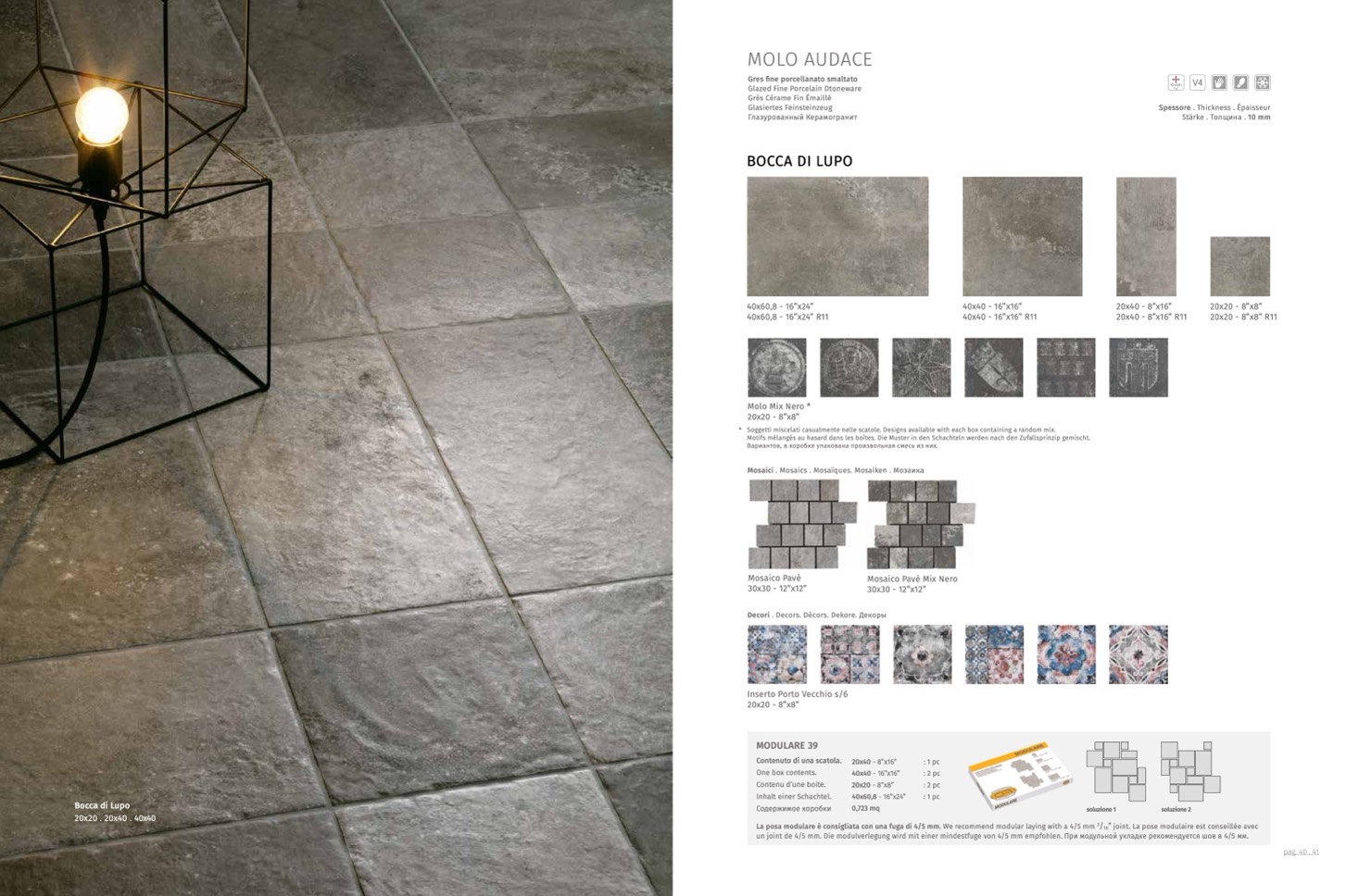 La posa modulare è consigliata con una fuga di 4/5 mm. We recommend modular laying with a 4/5 mm