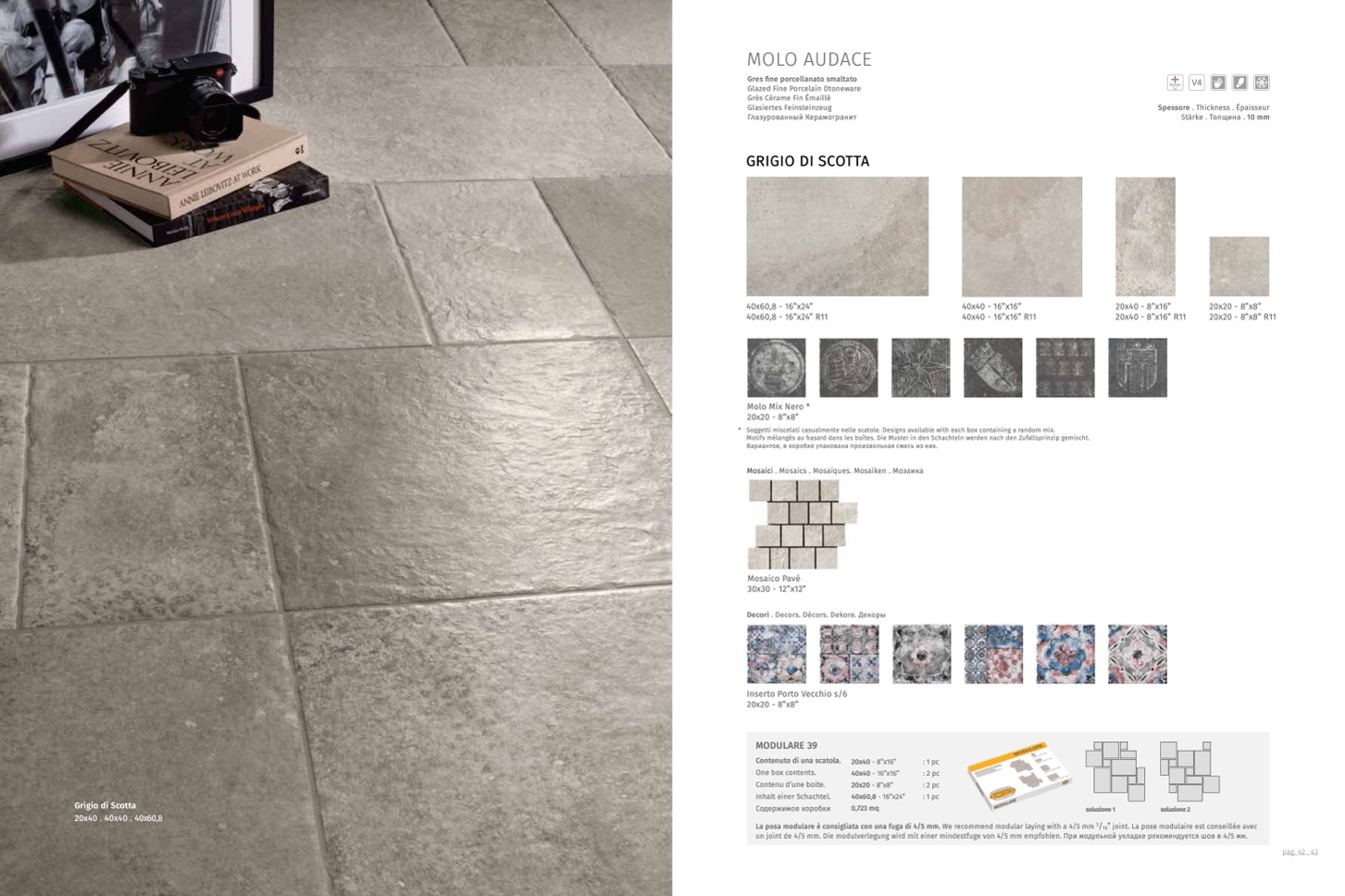 La posa modulare è consigliata con una fuga di 4/5 mm. We recommend modular laying with a 4/5 mm