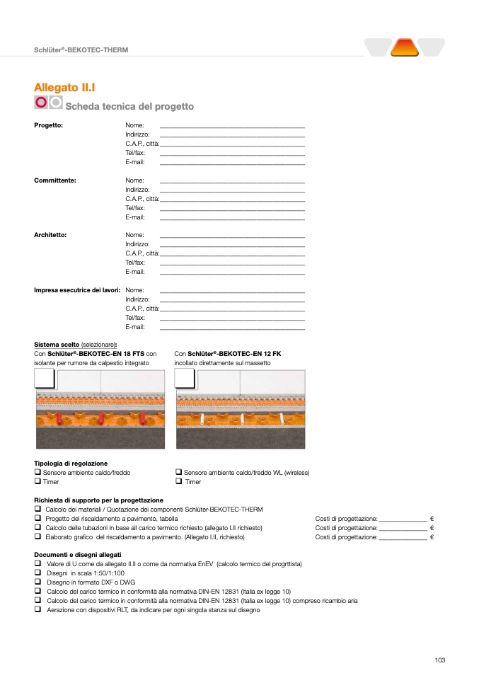 q Calcolo dei materiali / Quotazione dei componenti Schlüter-BEKOTEC-THERM