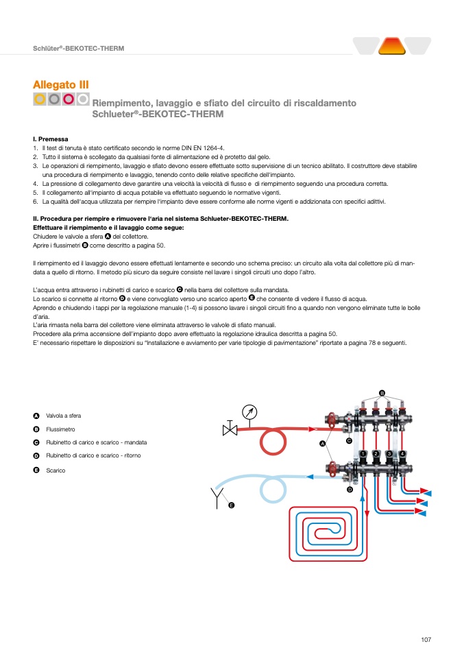 II. Procedura per riempire e rimuovere l‘aria nel sistema Schlueter-BEKOTEC-THERM.