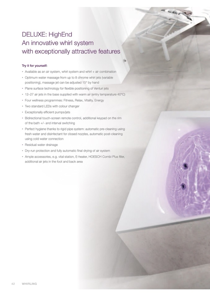 available as an air system, whirl system and whirl + air combination