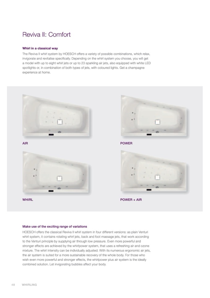 HoesCH offers the classical reviva ii whirl system in four different versions: as plain venturi