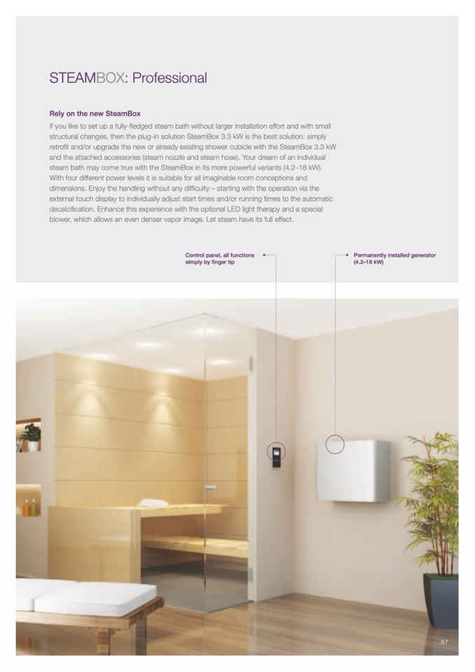 steam bath may come true with the steambox in its more powerful variants (4.2–18 kW).