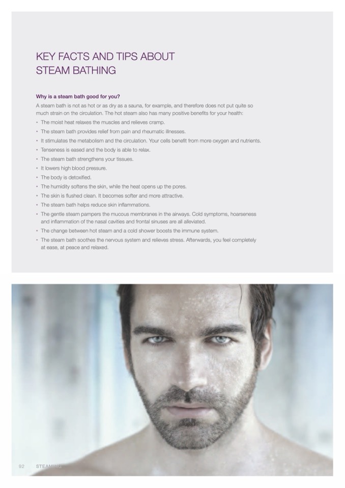 the steam bath soothes the nervous system and relieves stress. afterwards, you feel completely