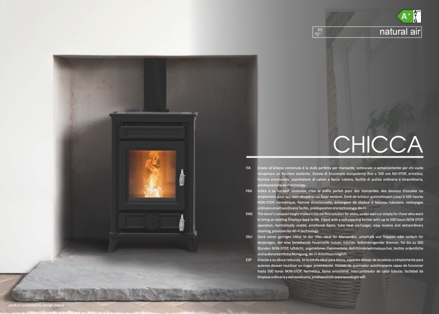 ENG The stove's compact height makes it the perfect solution for attics, under stairs or simply for those who want
