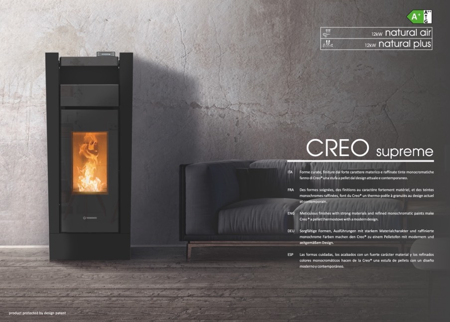 fanno di Creo® una stufa a pellet dal design attuale e contemporaneo.
