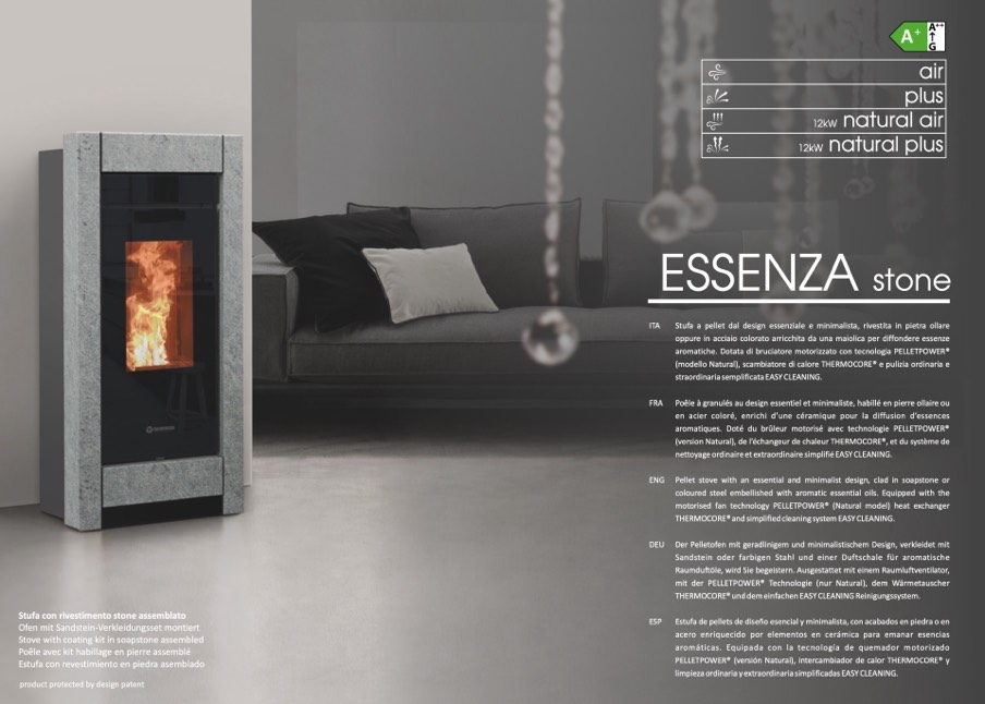 ENG Pellet stove with an essential and minimalist design, clad in soapstone or