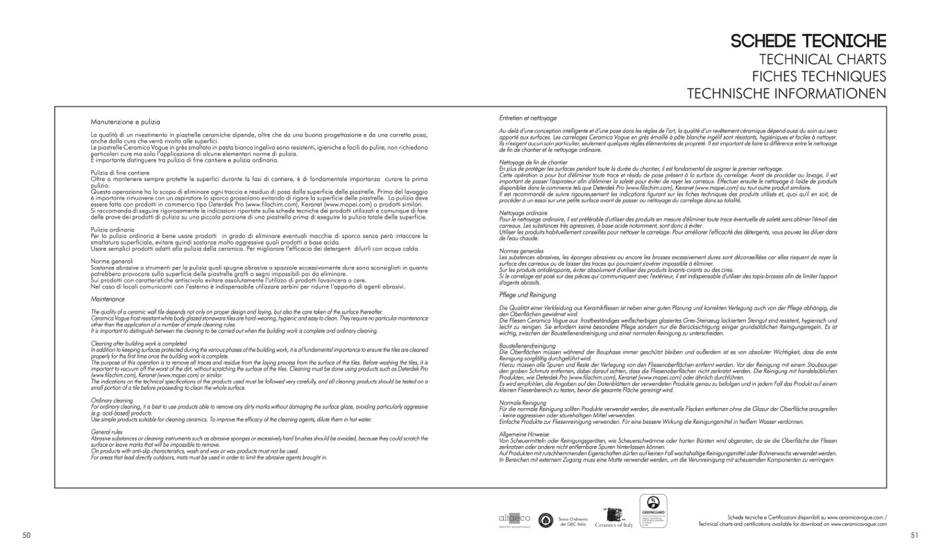 Technical charts and certifications available for download on www.ceramicavogue.com