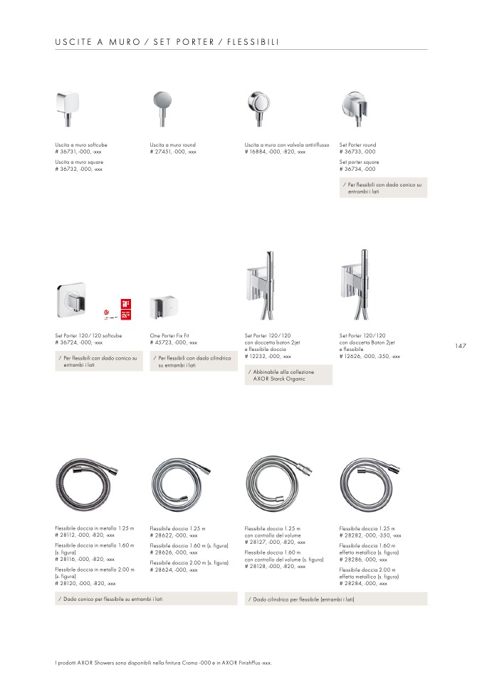 I prodotti AXOR Showers sono disponibili nella finitura Cromo -000 e in AXOR FinishPlus -xxx.