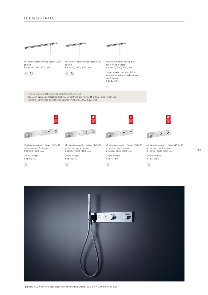I prodotti AXOR Showers sono disponibili nella finitura Cromo -000 e in AXOR FinishPlus -xxx.
