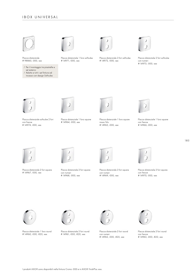 I prodotti AXOR sono disponibili nella finitura Cromo -000 e in AXOR FinishPlus -xxx.