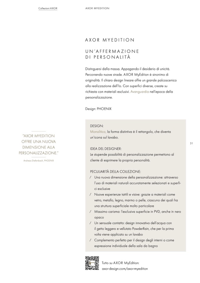 Percorrendo nuove strade. AXOR MyEdition è sinonimo di