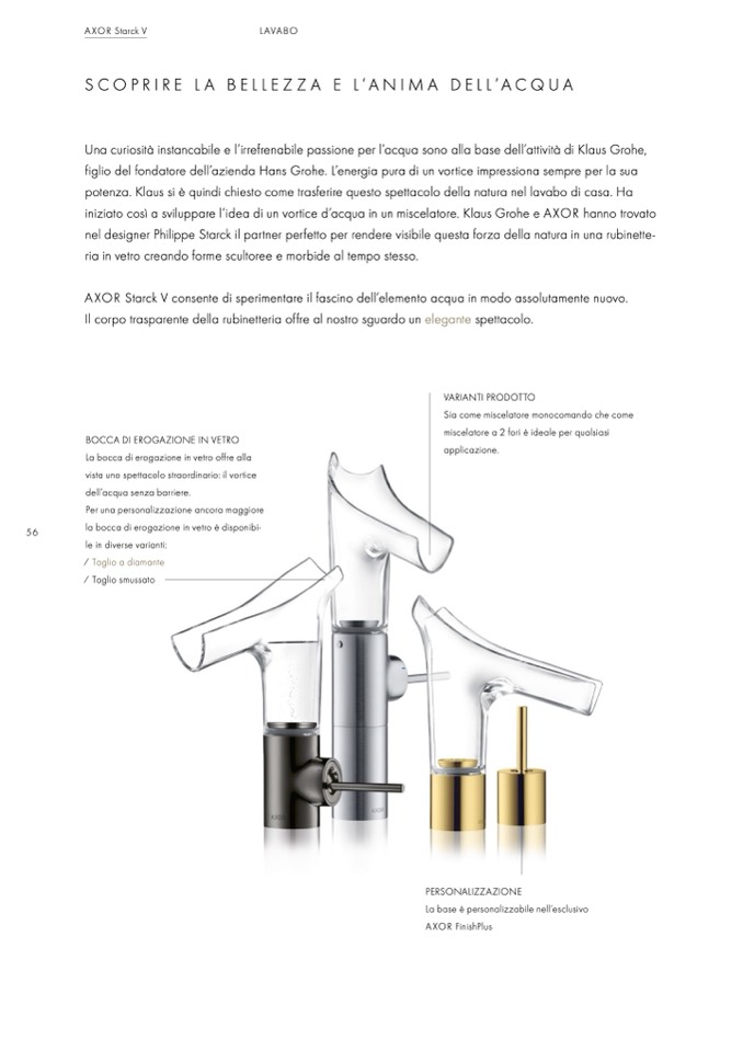 iniziato così a sviluppare l’idea di un vortice d’acqua in un miscelatore. Klaus Grohe e AXOR hanno trovato