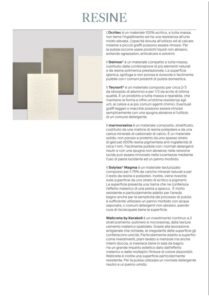 come rivestimenti, piani lavabo e mensole ma anche
