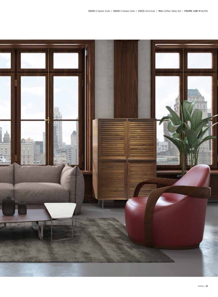SOHO 2 Seater Sofa | SOHO 3 Seater Sofa | COCO Armchair | MIA Coffee Table Set | FRAME LINE M Buffet