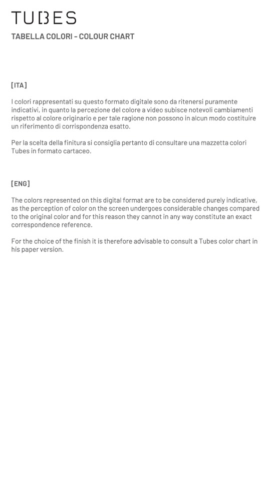 For the choice of the finish it is therefore advisable to consult a Tubes color chart in