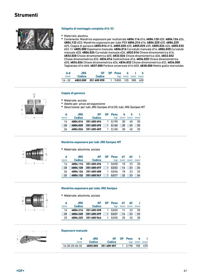 d32 /// 4805.000 Espansore manuale, 4806.016 Curvatubi manuale d16, 4806.020 Curvatubi