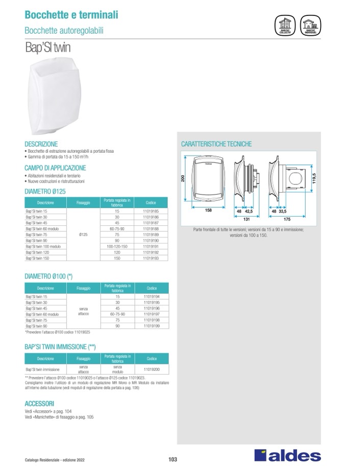 ** Prevedere l’attacco Ø100 codice 11019025 o l’attacco Ø125 codice 11019023.