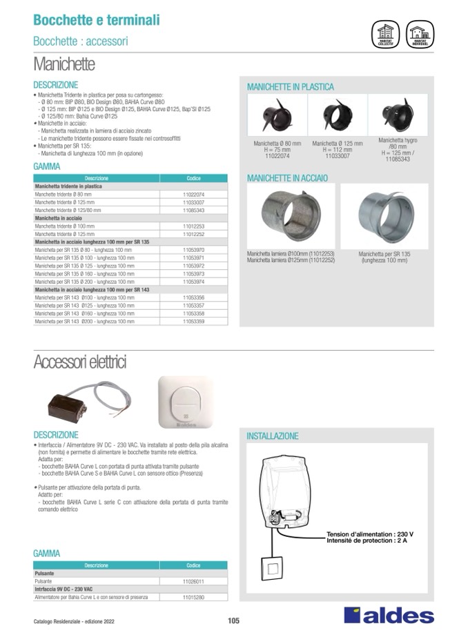 - Ø 125 mm: BIP Ø125 e BIO Design Ø125, BAHIA Curve Ø125, Bap’SI Ø125