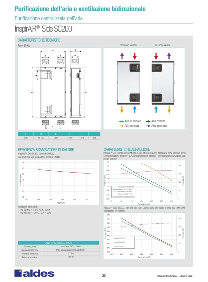 Side SC200 Classic MODBUS, con filtro immissione ISO Coarse 65% pollini (di serie)