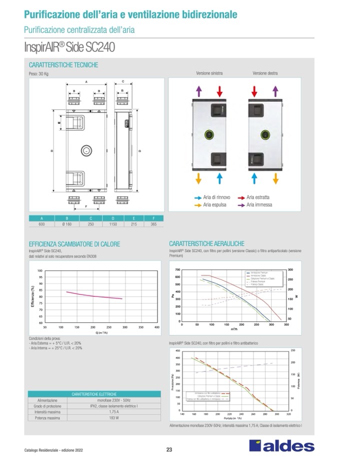 Side SC240, con filtro per pollini (versione Classic) o filtro antiparticolato (versione