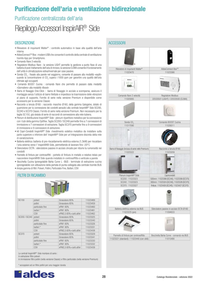 • Ampia gamma di filtri: Polveri, Pollini, Particolato Fine, Batteri, COV