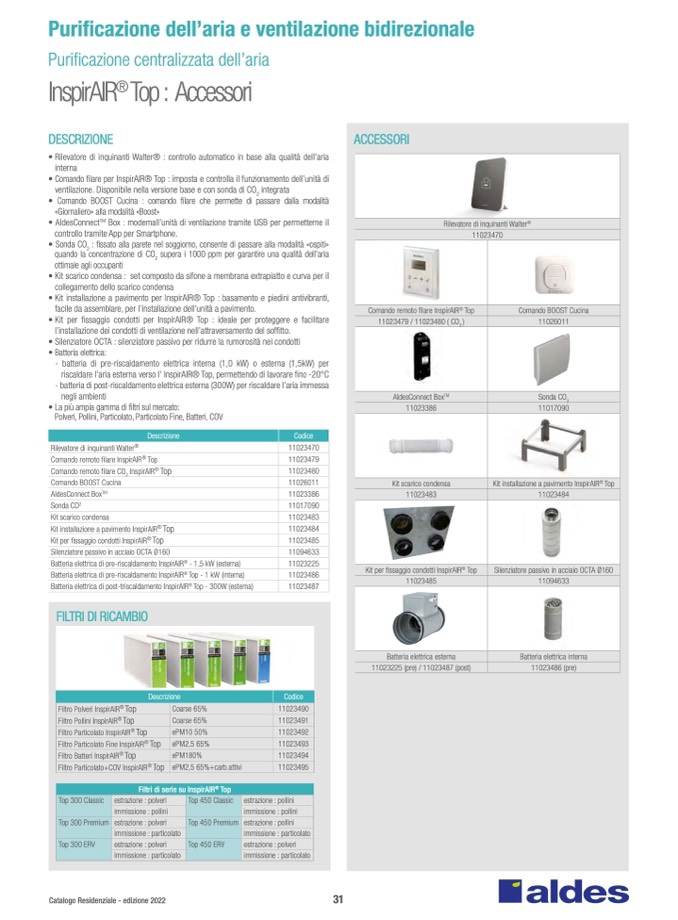 • Comando filare per InspirAIR® Top : imposta e controlla il funzionamento dell’unità di