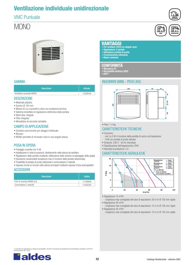 • MONO permette di rinnovare l’aria in una singola stanza.