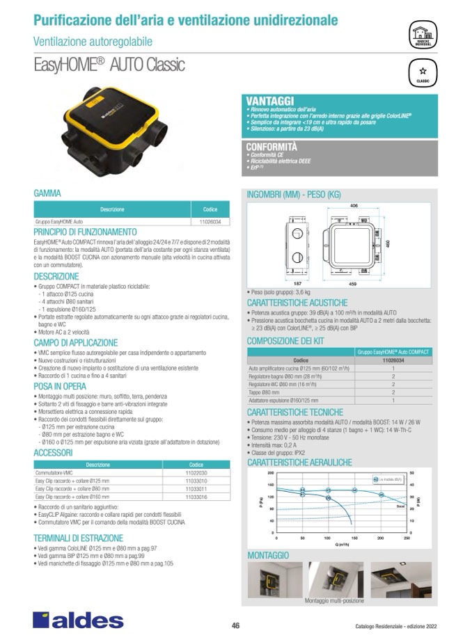 • Potenza acustica gruppo: 39 dB(A) a 100 m3/h in modalità AUTO