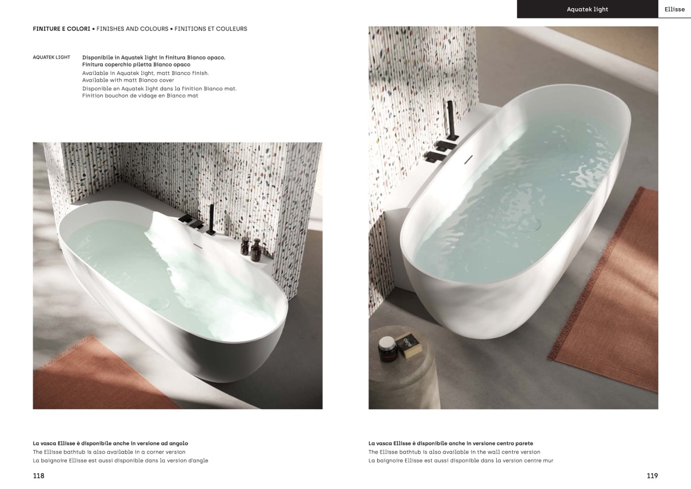 The Ellisse bathtub is also available in a corner version