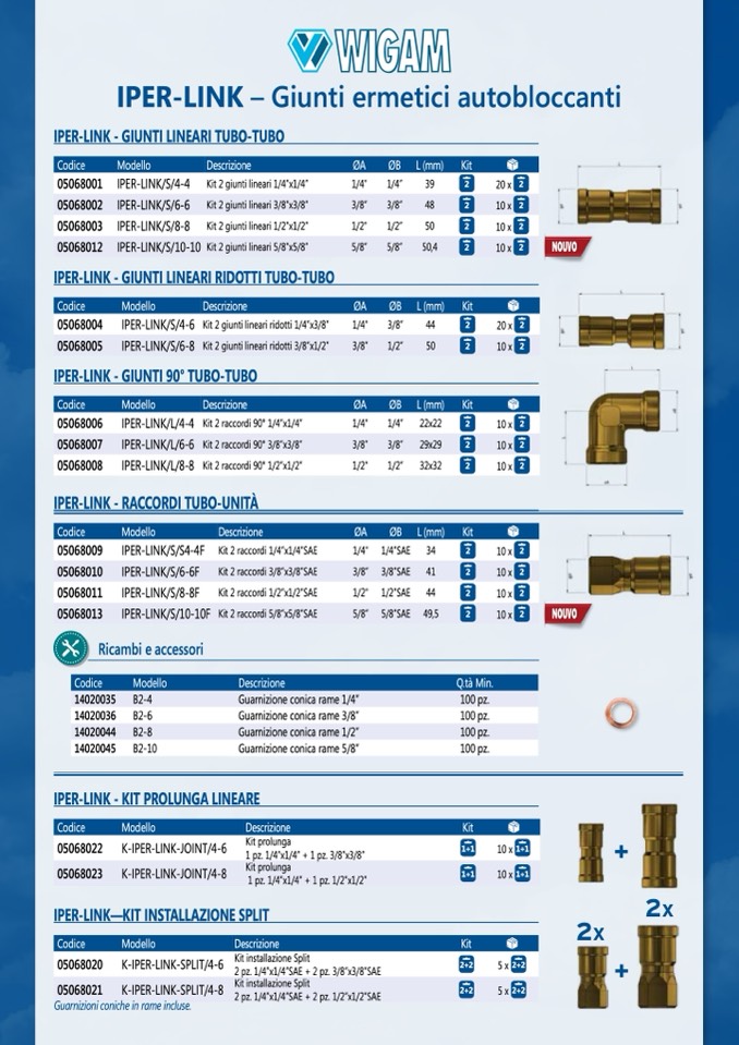 2 pz. 1/4”x1/4”SAE + 2 pz. 3/8”x3/8”SAE