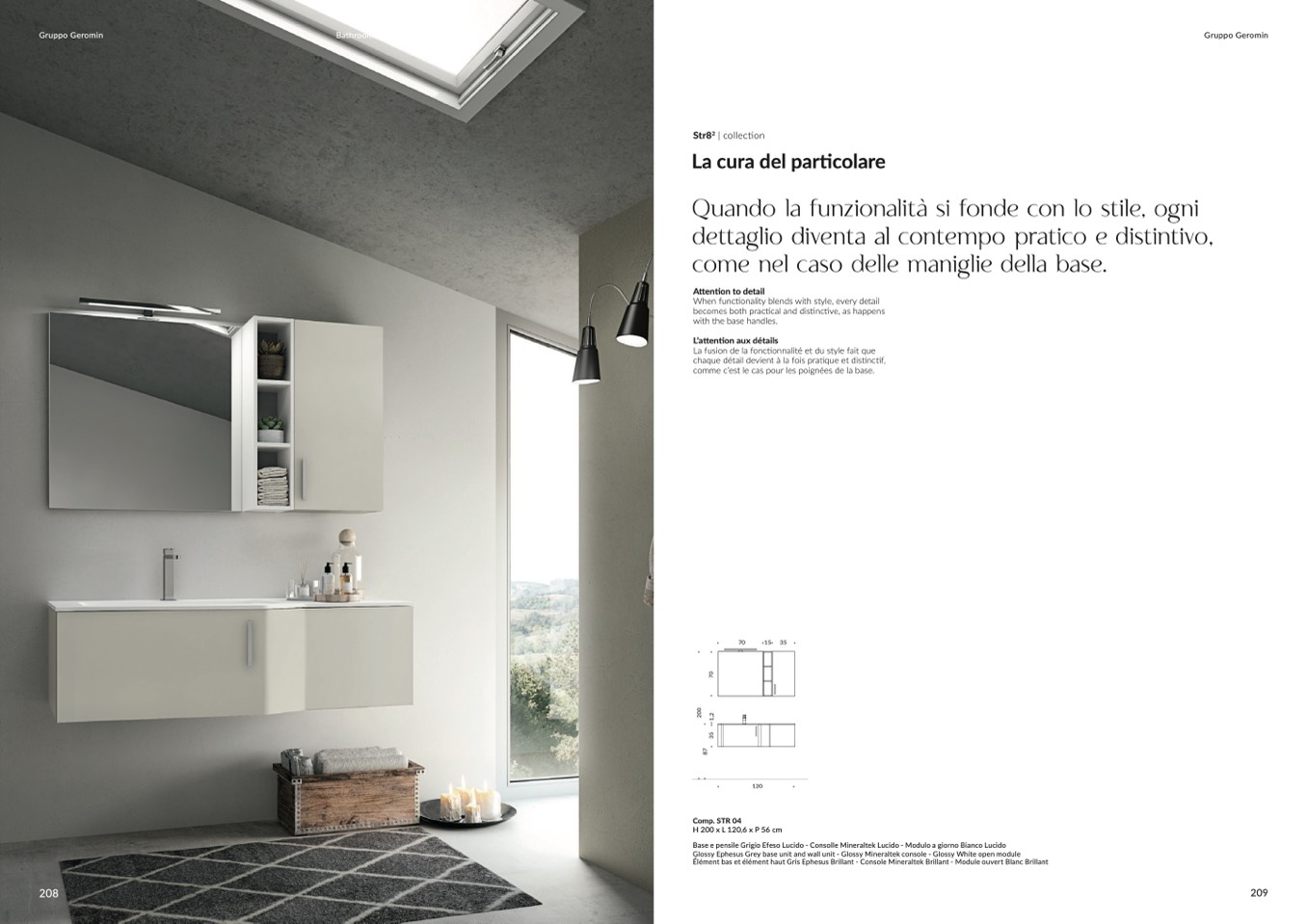 Base e pensile Grigio Efeso Lucido - Consolle Mineraltek Lucido - Modulo a giorno Bianco Lucido