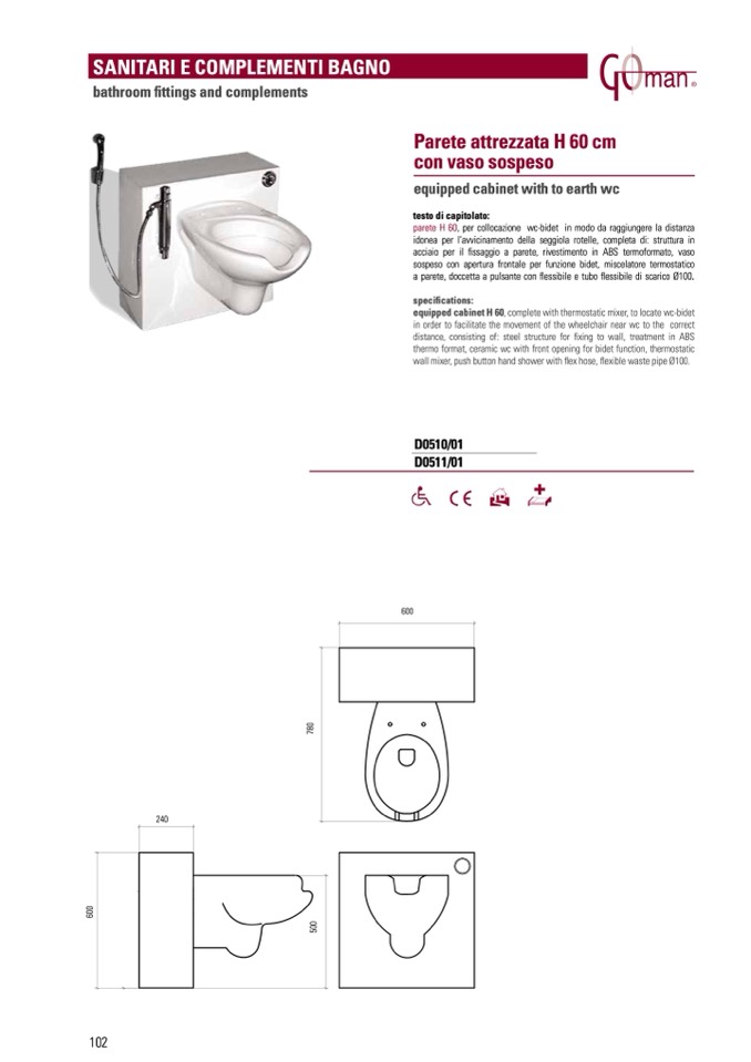 equipped cabinet H 60, complete with thermostatic mixer, to locate wc-bidet