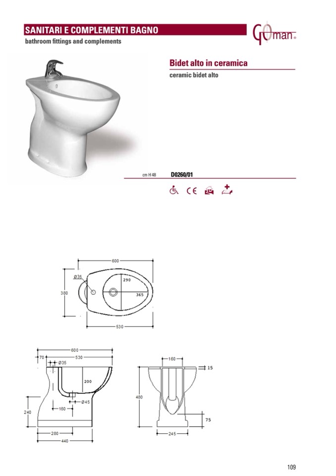 Bidet alto in ceramica