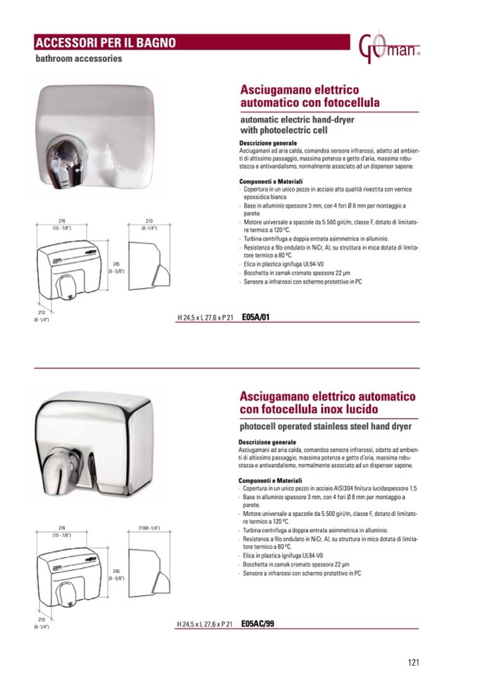 Asciugamani ad aria calda, comandoa sensore infrarossi, adatto ad ambien-