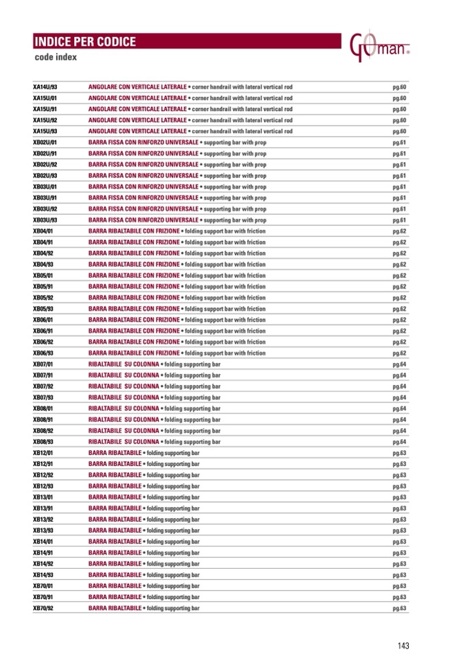 BARRA RIBALTABILE CON FRIZIONE • folding support bar with friction