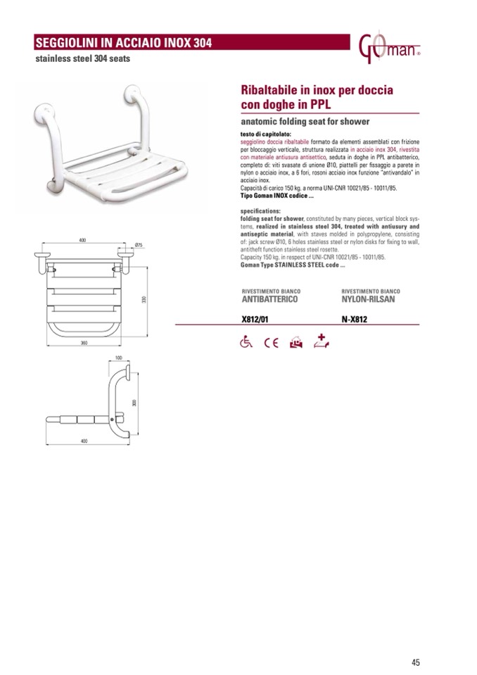folding seat for shower, constituted by many pieces, vertical block sys-