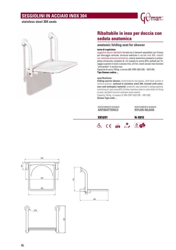 seggiolino doccia ribaltabile formato da 2 elementi assemblati con frizione
