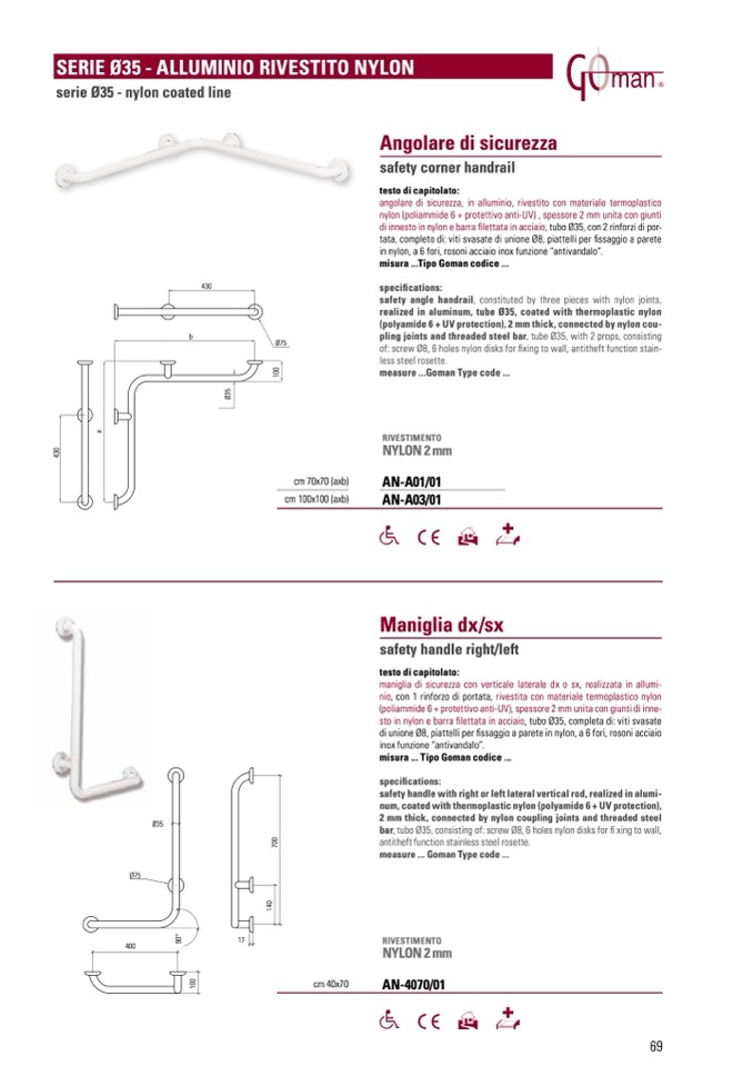 maniglia di sicurezza con verticale laterale dx o sx, realizzata in allumi-