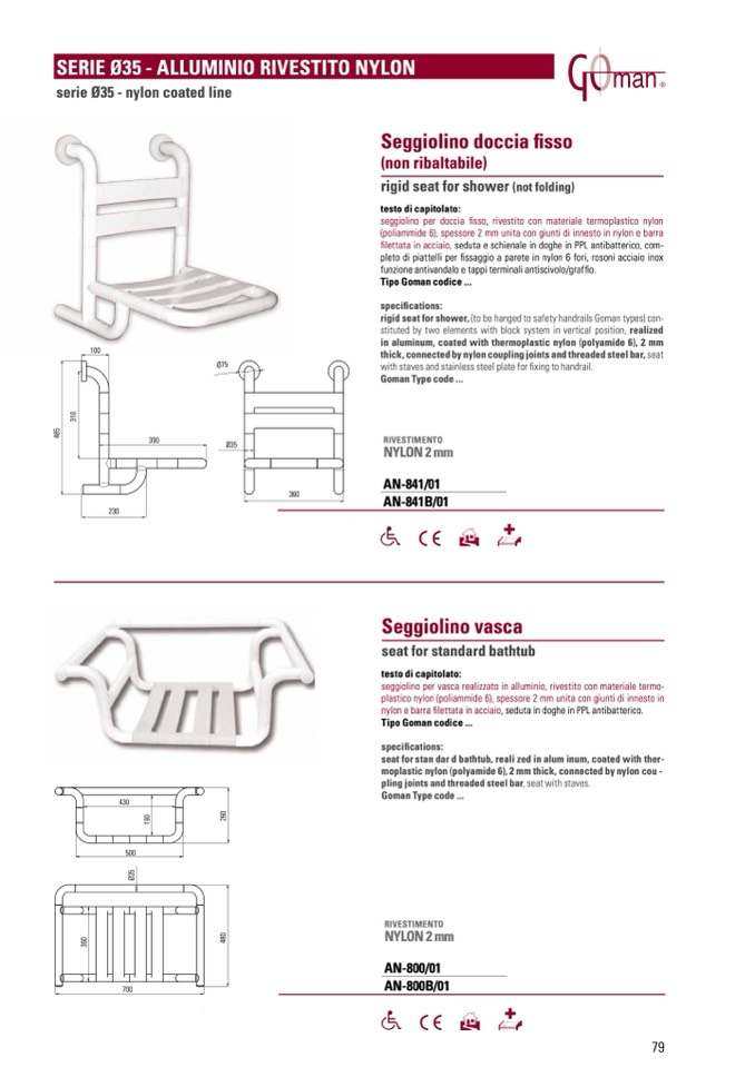 rigid seat for shower, (to be hanged to safety handrails Goman types) con-