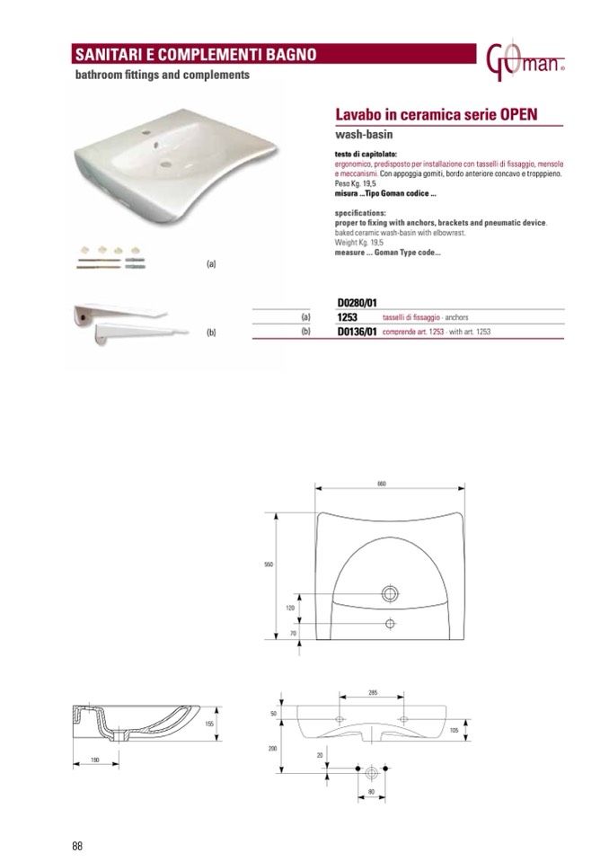 ergonomico, predisposto per installazione con tasselli di fissaggio, mensole