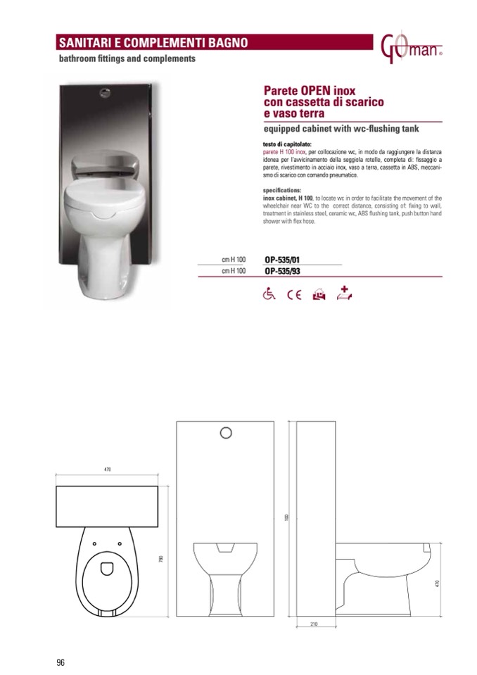 inox cabinet, H 100, to locate wc in order to facilitate the movement of the