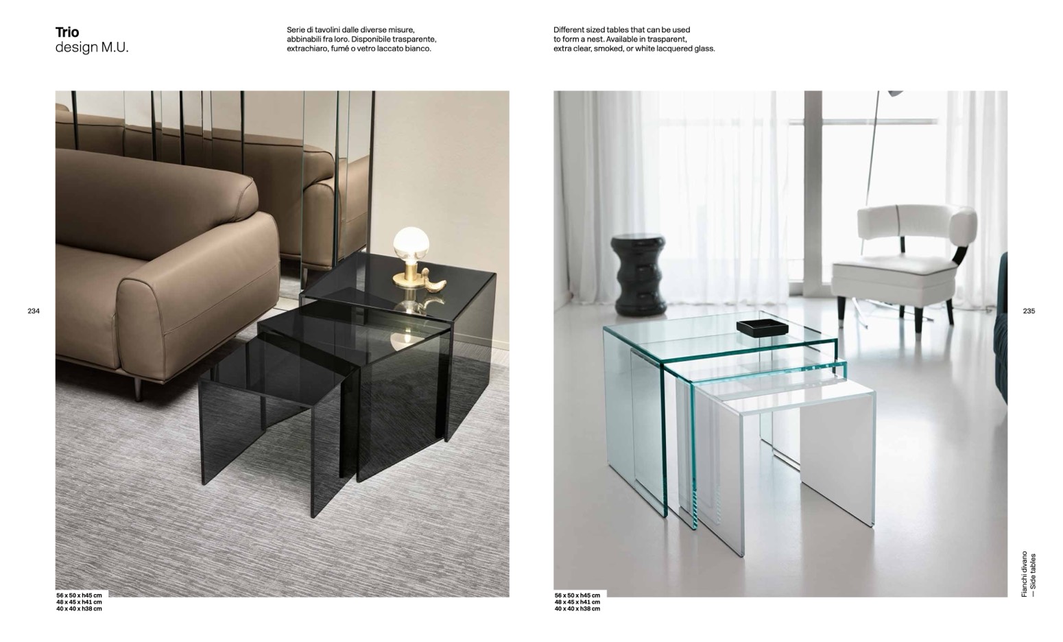 extra clear, smoked, or white lacquered glass.