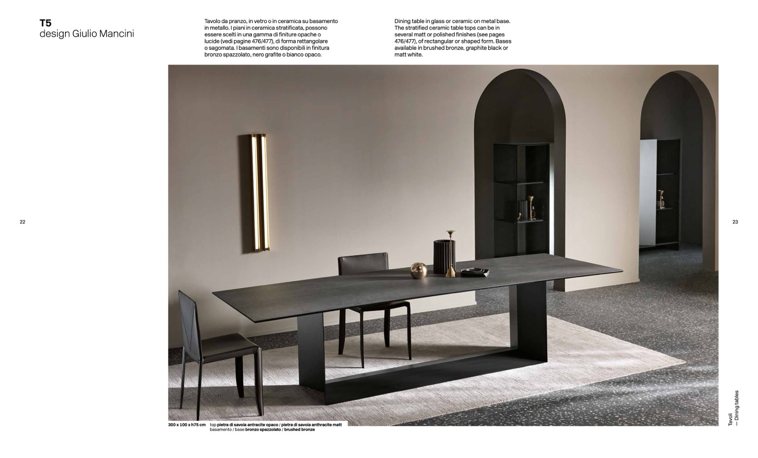 Tavolo da pranzo, in vetro o in ceramica su basamento