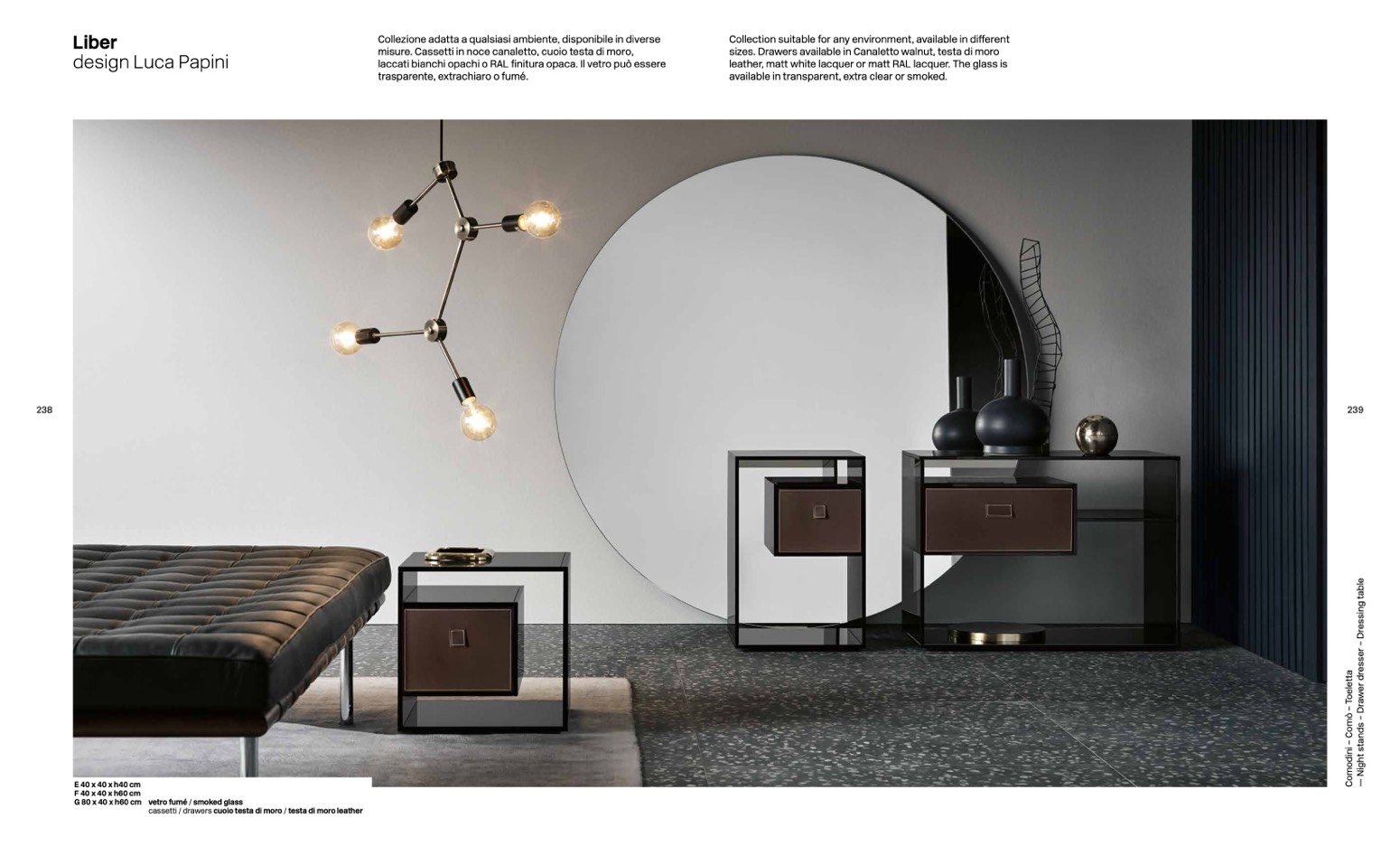 sizes. Drawers available in Canaletto walnut, testa di moro