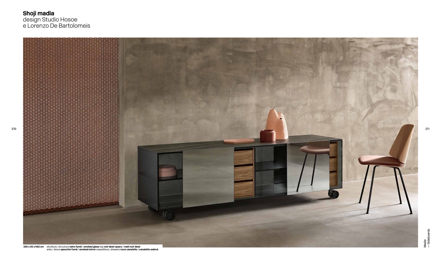 ante / doors specchio fumé / smoked mirror cassettiera / drawers noce canaletto / canaletto walnut