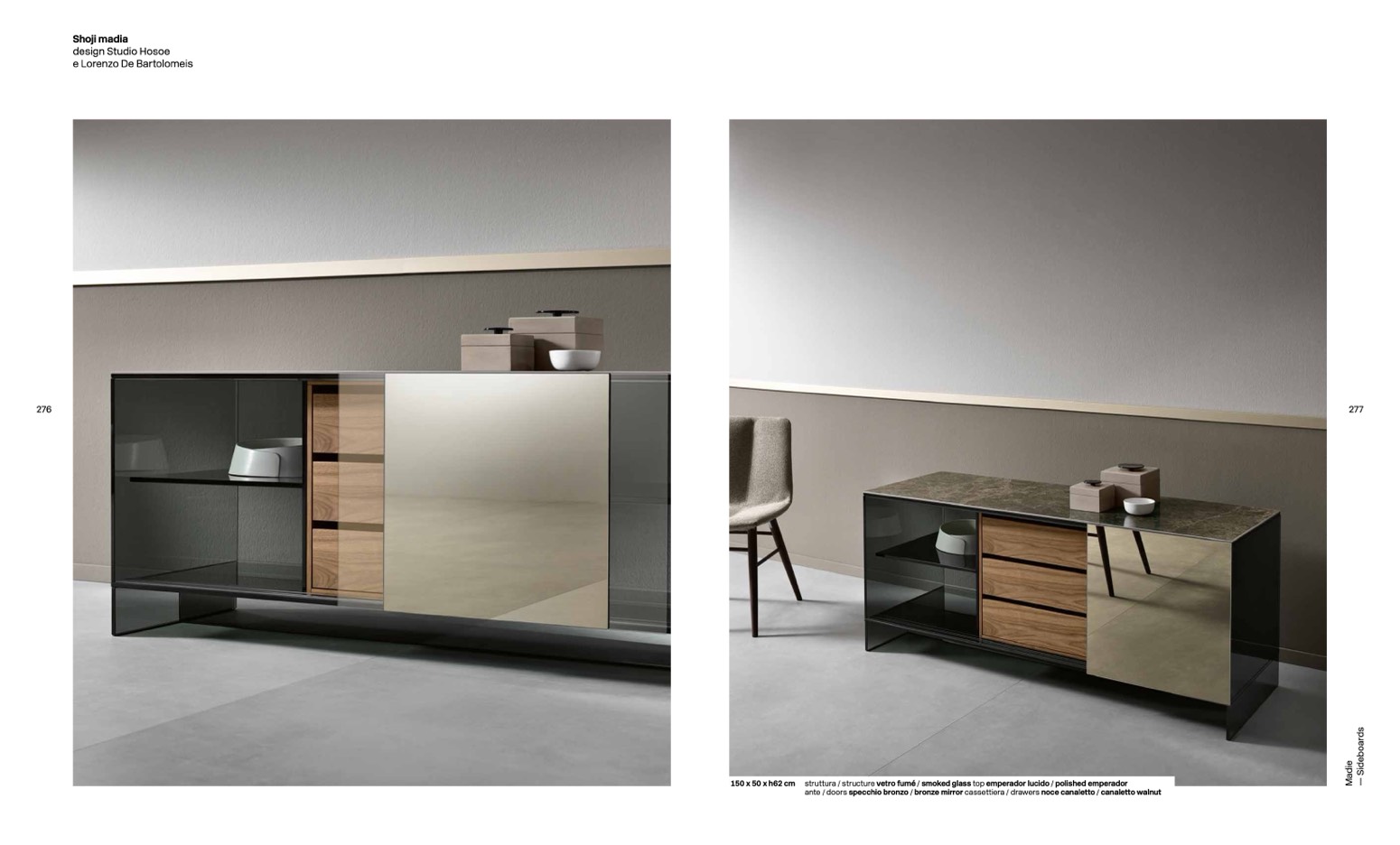 150 x 50 x h62 cm struttura / structure vetro fumé / smoked glass top emperador lucido / polished emperador