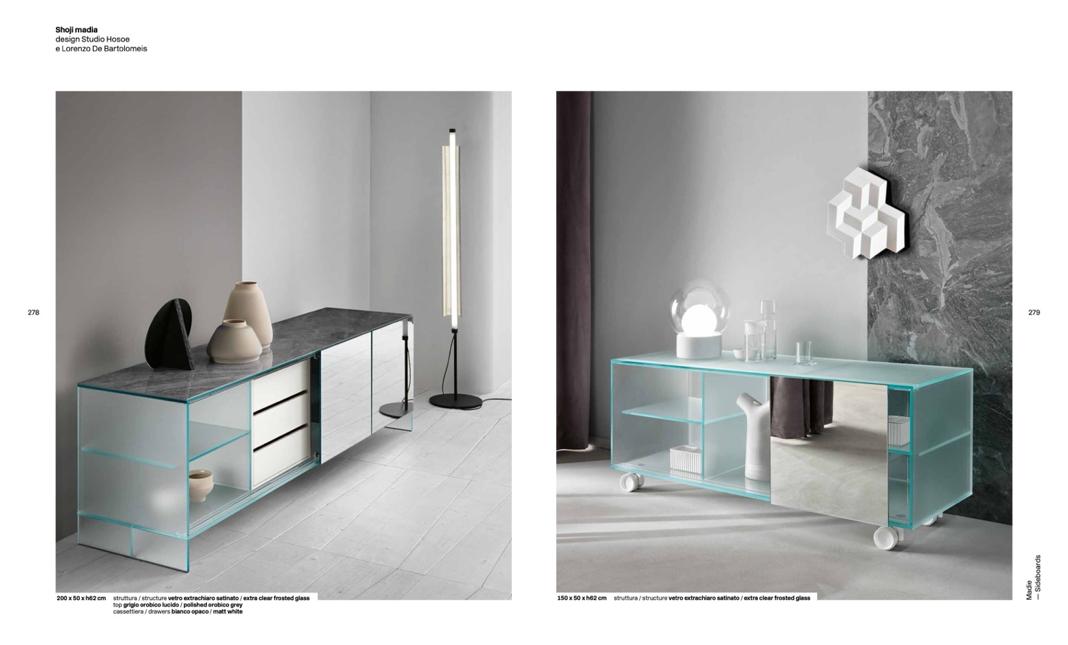 200 x 50 x h62 cm struttura / structure vetro extrachiaro satinato / extra clear frosted glass