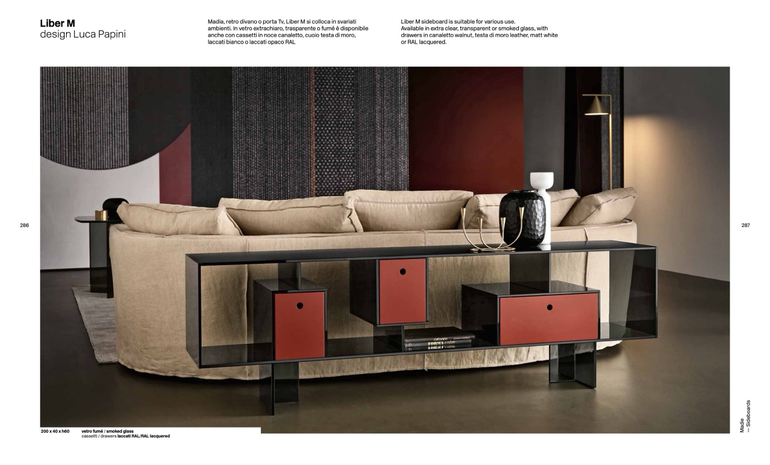 Madia, retro divano o porta Tv, Liber M si colloca in svariati