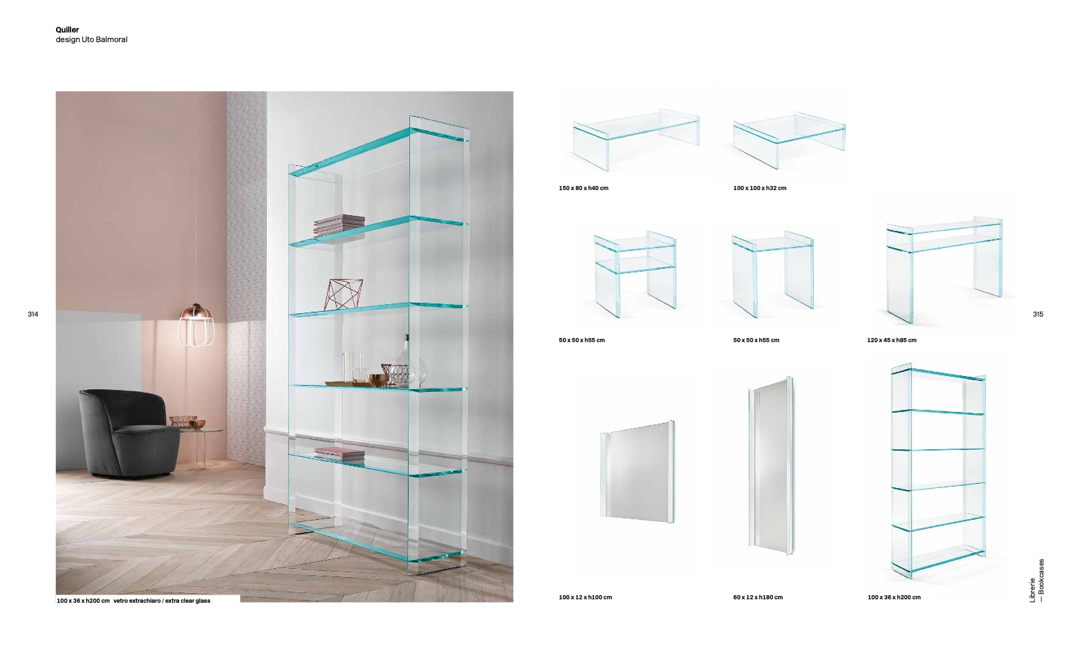 100 x 36 x h200 cm vetro extrachiaro / extra clear glass